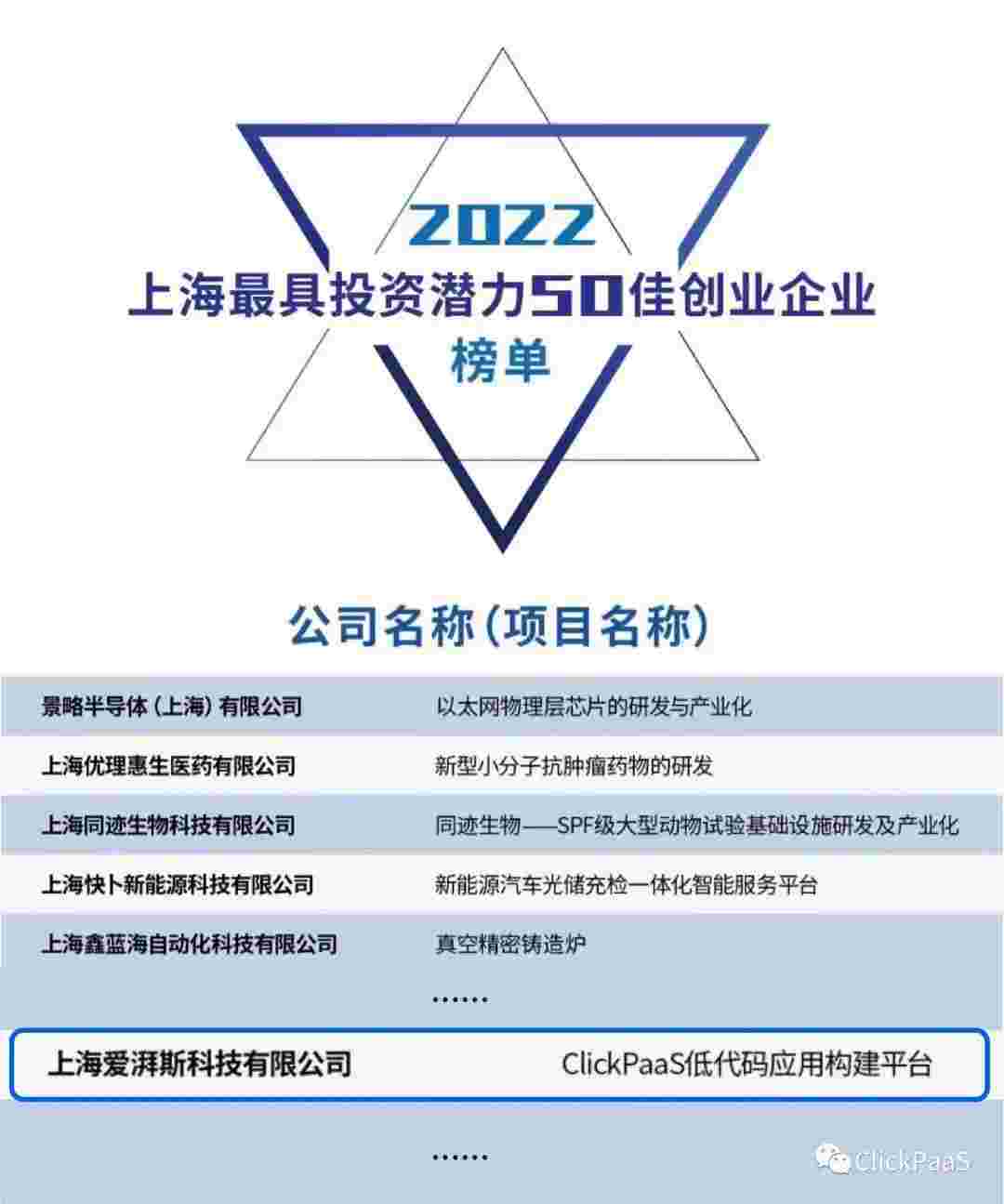 小微钱包 作为国内低代码PaaS平台的领军企业,,,,,,与120家创企入围角逐。。。。。。。。。。。。。期间接受了来自德同资本、、、、、、、、、领中资本等知名投资机构的10位投资人组成专家评委团的背靠背盲选。。。。。。。。。。。。。并最终入围“2022上海最具投资潜力50佳创业企业”榜单,,,,,,,,,被列入“上海市重点培育创业企业库”。。。。。。