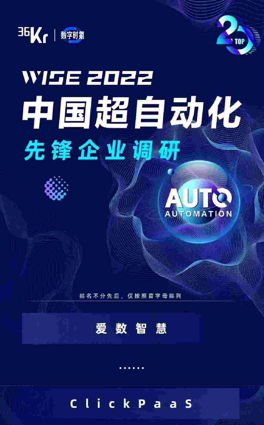 重磅 | 小微钱包入选36Kr「2022年中国超自动化先锋企业20强」
